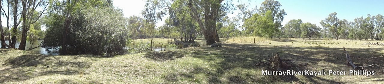 From Tooleybuc onwards the Murray seems to be increasingly influenced by the high level of the Edward Wakool system. There is no noticeable current 10 km out of Tooleybuc and water has reached the top of the bank and is overflowing into the surrounding countryside.